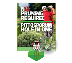 Pittosporum Hole in One is a vigorous grower, yet stays very compact and round with little pruning. Branching freely from its base, it develops a very dense, multi-stemmed shape… All without maintenance or pruning.